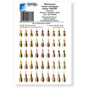 Мормышки литые с бисером золото серебро медь для ловли рыбы упаковка штук Капля с бисером золото серебро медь Россия - - 45 - -