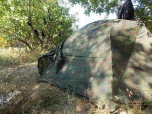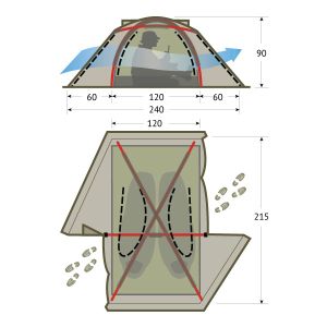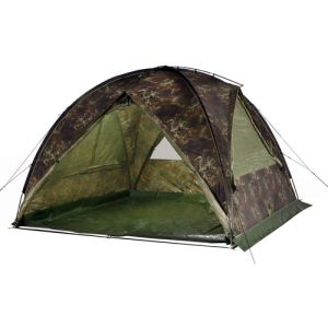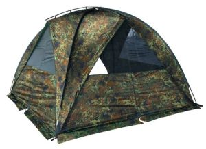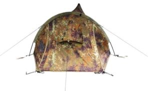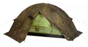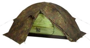 Камуфлированные палатки Tengu выполнены из наружнего водонепроницаемого материала, а также имеют непромокаемый пол для внутреннее тента. Особое внимание в серии палаток Tengu уделено вентиляции палаток. За время восьмичасового сна в палатке турист выделяет до 250 грамм влаги. Это происходит во время дыхания. Этот фактор и еще некоторые влияют на образование конденсата в палатке. Если в палатке не предусмотрена или плохо продумана вентиляция, то турист будет испытывать дискомфорт. Чтоы избежать этого, в линейке палаток Tengu предусмотрена вентиляция, которая проходит как бы сквозь всю палатку. свежий воздух поступает через нижние границы тента, а отработанный кислород с излишней влагой выгоняется между внутренним и внешним слоем палатки через специальные отверстия. Например, модель однослойной палатки Tengu Mark 1.01B выполнена из особо прочной ткани полиэстер 195Т, H2O - 6000 мм. Особый камуфляжный рисунок делает палатку практически незаметной на фоне лиственных деревьев. Материал пропитан огнезащитной смесью, аэродинамическое сопротивление - до 11 м/с.