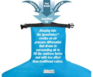 Принцип работы такой: по углам самонадувающегося коврика расположены клапаны, которые препятствуют попаданию воздуха внутрь вспененного материала, и тогда клапаны закрыты, этот материал будет находиться в сжатом состоянии, а значит, сам коврик будет компактным. Как только открыть клапаны, воздух начинает заполнять пространства, которые присутствуют в пене, и изделие выпрямляется.