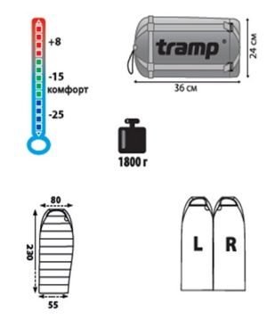 Мешок спальный походный комфорт Tramp Siberia 5000 ( +6)