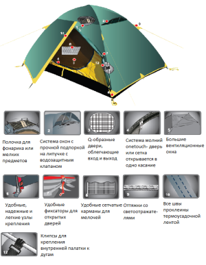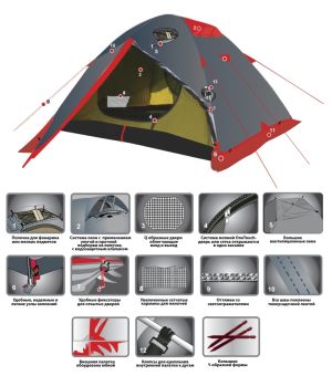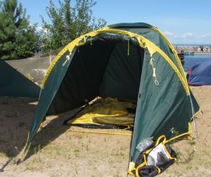 В арсенале бренда Tramp имеется большой выбор палаток, тентов и комплектующих к ним. Можно приобрести палатку как для двух (Tramp Colibri V2) или трех путешественников (Tramp Sirius V2), так и кемпинговый дом для шести человек (Tramp Brest 9 V2).